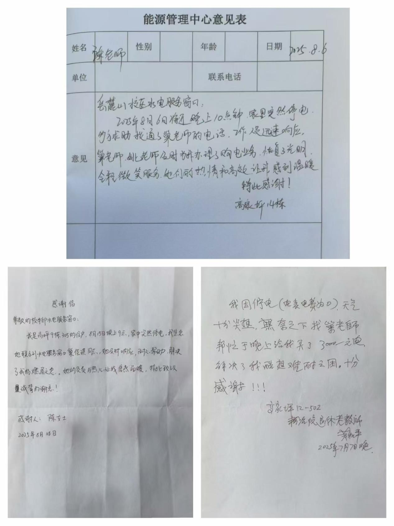 他们是为学生奔波的“热心人”。工作人员主动上门为学生解答用电疑问并进行表计临时短接共19次,连夜加班提供紧急购电服务11次,收到学生的感谢信5封。此外,他们同步参与学生宿舍与教学楼栋装修的水电表计摘抄工作,协同保障校园民生工程顺利推进。