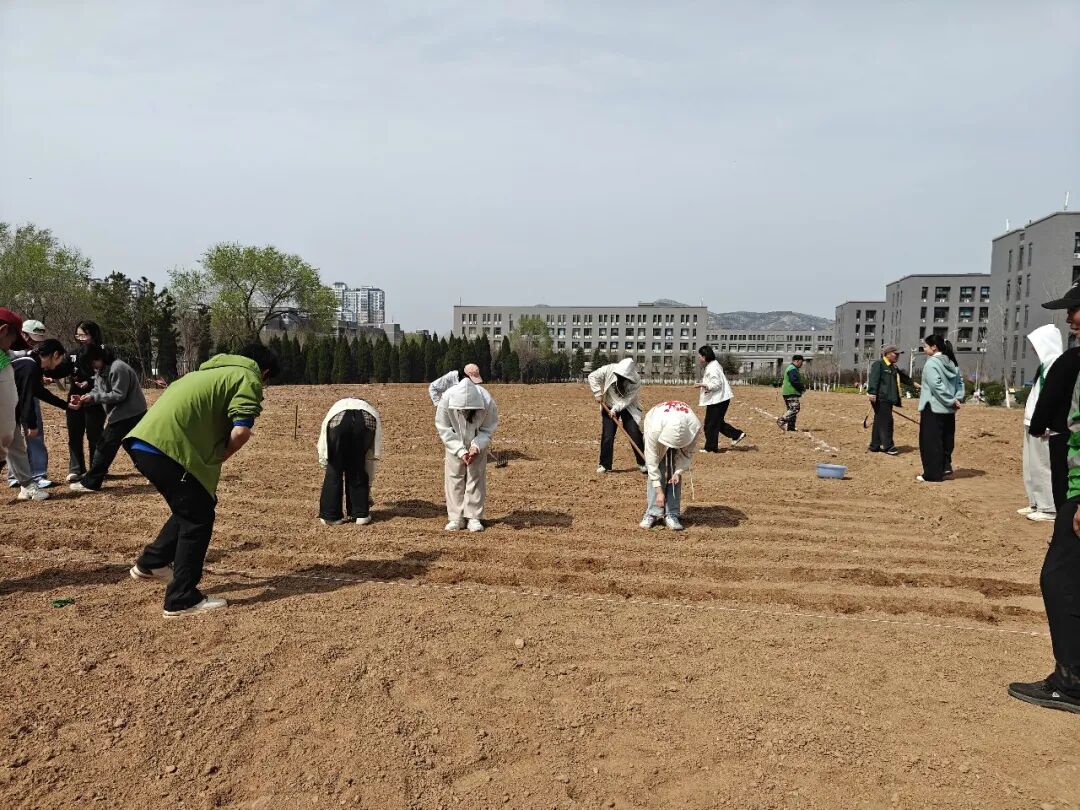 植树活动现场热火朝天,一派繁忙的劳动景象。师生分工协作、默契配合,挥锹铲土、扶苗填坑、踩实围堰、提水浇灌,认真完成每一道工序。本次活动共种下银杏43棵、龙柏13棵。该批树木原栽植于博物楼南侧,因学校规划建设需要,将其移栽至文脉大道西侧,不仅丰富了文脉大道周边的绿化景观层次,而且统筹推进了校园基础设施升级与生态景观优化,同时将生态育人理念融入校园环境建设之中。植树现场还一起播下格桑花种,计划建设5000余平方米的格桑花田。