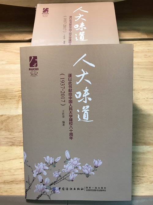 在人大80周年校庆即将来临之际,由人大后勤集团策划,北区食堂主任王祚荣编著的《人大味道——谨以此书献给中国人民大学建校八十周年(1937-2017)》一书,近日由中国纺织出版社正式出版。