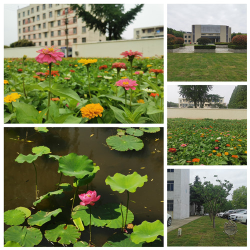 十余项工程于6月初全部完工,镜月湖内集中栽植的荷花、睡莲与岸边的鸡爪槭、红花檵木、红叶石楠等乔灌木相映成趣;意图于秋日打造的万余平方百日花宴现已初具规模;校史馆、青年公寓周边铺设的天堂草、马尼拉在微风的吹拂下舒展着自己柔嫩的身躯。