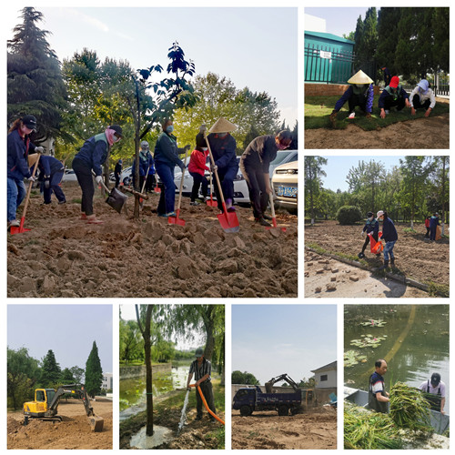 谷雨时节,淮阴师范学院长江路校区物业服务中心同步推进镜月湖南绿化工程及镜月湖水质改造工程;于体育学院西侧、文化广场及音乐楼南侧种植百日草13453.6平方;对校史馆周边土地重新平整,更新草坪3800平方;于青年公寓周边铺设马尼拉草皮4300平方。芒种时分,针对家属区经年累积的建筑垃圾堆积、废品四处堆放、种植地养畜地逐渐扩大问题,进行统一整治,清除地面违章建筑、建筑垃圾及废弃水泥路面,更新草坪2600平方。