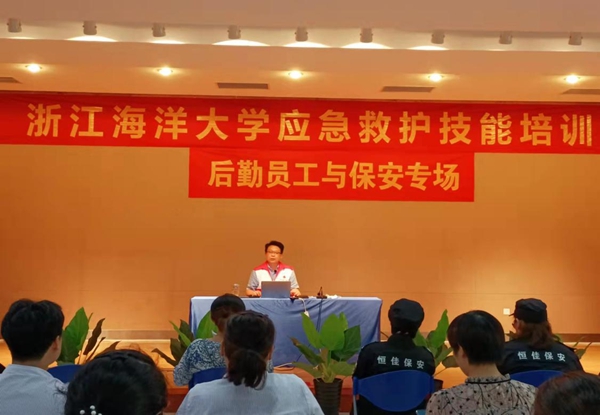 为培养团队协作意识,拓展员工救护知识,增强应急处置能力,6月21日至23日,浙江海洋大学公共事务服务中心在杨存国会展中心2号报告厅开展应急救护技能培训。培训邀请了校医院救助团队进行讲解和示范,中心宿管员、教室管理员和水电工等一线员工参加此次培训。