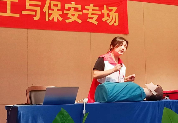 培训采取线上线下同步进行的方式开展,员工可提前登录“来浙学急救”小程序自行开展学习。在现场教学中,培训主要从“意外伤害、常见急症”、“心肺复苏及AED使用理论”及“创伤急救及理论及实操教学”三大模块进行剖析。通过列举大量的案例让原本晦涩的医学救护知识变得通俗易懂,结合示范,让原本繁杂的操作流程变得不再陌生。通过练习,参训人员逐渐掌握急救操作要领,并在最后的检测环节,小试牛刀,进一步巩固所学的操作要领。
