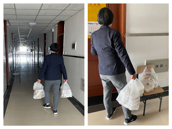 我校学生公寓楼分布较广,为了提高工作效率,确保在最短时间内将爱心餐食送到各寝室,饮食服务部在餐厅一楼设立了“餐品打包分拣档口”,餐厅工作人员兵分五路,专人专职,准时准点将餐食送至各公寓楼。公寓服务部指定各公寓楼长对接每个楼层,各楼宇值班阿姨通力合作、抢抓效率,确保将热乎乎的饭菜及时送至同学们手中。订餐、核餐、打包、装袋、送餐……每一个环节都有条不紊,每一个步骤都严谨细致,充分彰显了后勤人的速度与温度。