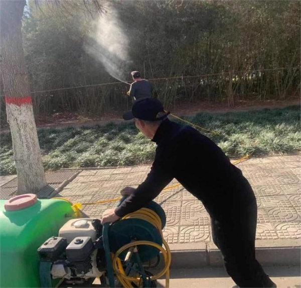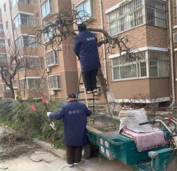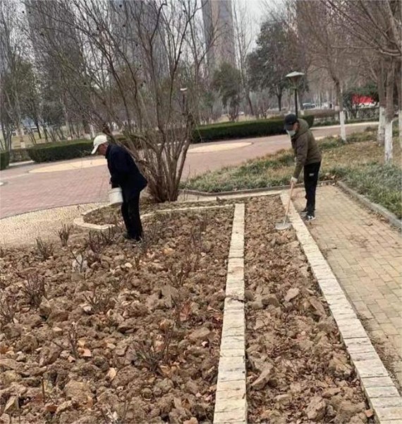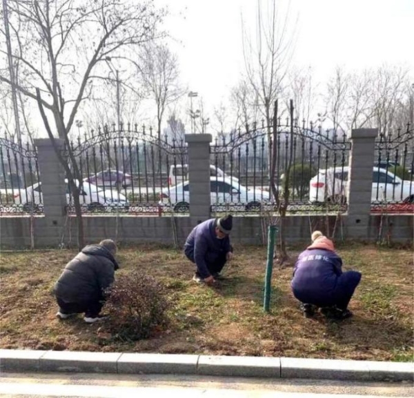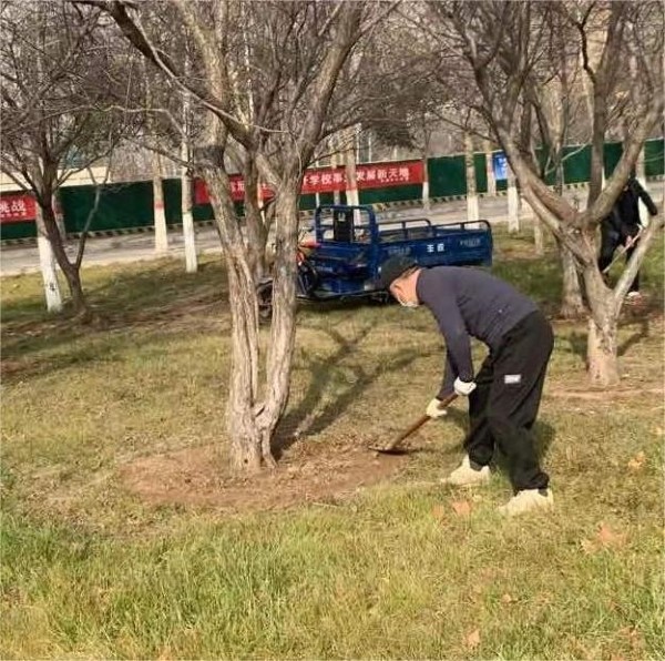 新乡医学院后勤保障部物业服务中心抓住春季园林植物绿化养护黄金期,有序开展树木整形修剪、绿化垃圾清理、松土除草施肥、花坛草坪补栽等养护管理工作,为全年园林养护打好基础,提升美丽新医形象。