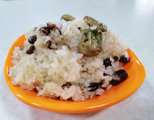 “立夏吃只蛋,力气大一万”,人们认为立夏吃蛋会比平时更补,更加强健有劲,孩子们还会把茶叶蛋装进用彩色线编织而成的蛋套笼里,带去学校跟小伙伴们进行“拼蛋”游戏。立夏这天,两校区的食堂里已整整齐齐摆放好了色泽诱人的茶叶蛋,颇受师生们的欢迎。除了早餐,午餐时间食堂也有茶叶蛋供应。立夏这天,舟山民间还有吃糯米饭的习俗,香喷喷的糯米饭掺杂着豇豆或者蚕豆,具有增强体质、抗暑消暑的寓意。