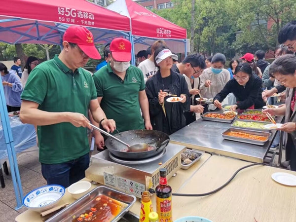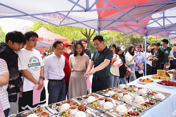 近日,沙洲职业工学院校园文化品牌活动——“520”学生营养日暨校园美食文化节顺利举行。沙工每年以“中国学生营养日”为平台,开展健康美食展示活动,倡导厉行节约绿色健康生活方式,引导广大师生合理膳食、健康饮食。5月19日,后勤保卫处在第二食堂南广场成功举办第八届校园美食文化节系列活动。今年的活动主题为“品味校园独特味道,弘扬沙工美食文化”,吸引了大量师生到现场参与活动,学院领导钱锦东、章雯、陈海英、袁勋到现场指导并参与活动。