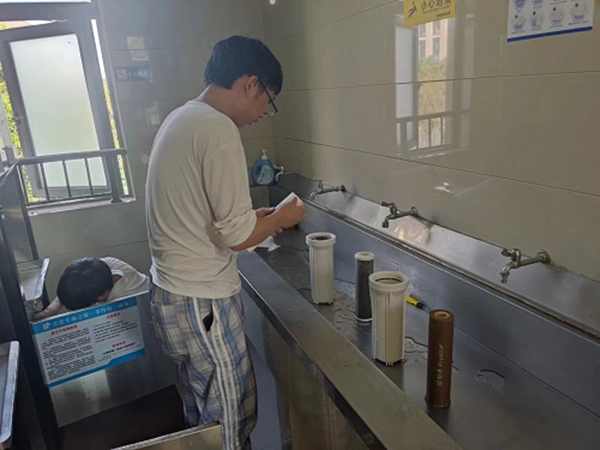 在各学生宿舍,中心对宿舍的卫生清理、空调、洗衣机及开水器状况进行全面检查。目前各宿舍内外已进行了全面清理,直饮水机滤芯也已进行了更换,洗衣机已提前进行了消毒维保,工作人员已全面做好迎接返校师生的准备。