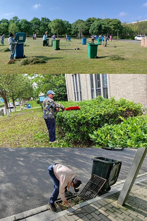 中心对校园卫生情况、绿化保养进行检查,目前校内各处环境卫生已全面清理,做到了不留卫生死角,灌木篱笆已进行了修剪,定海校区对部分花草进行了补种。