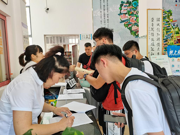 接待部提前对五舟广场报到处进行桌椅布置,开放影剧院等场所供家长休息;提前与长运公司、公交公司进行沟通联系,对出车驾驶员进行服务礼仪、规范培训,开通临安东站、浙农林大地铁站至学校的摆渡车辆,做好新生到校最后一公里保障。
