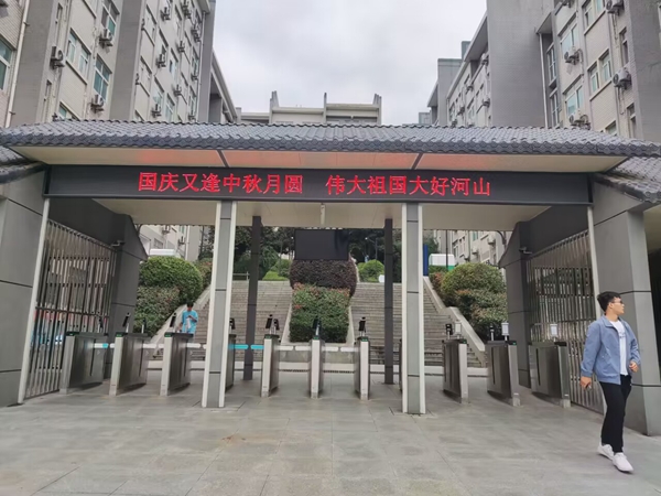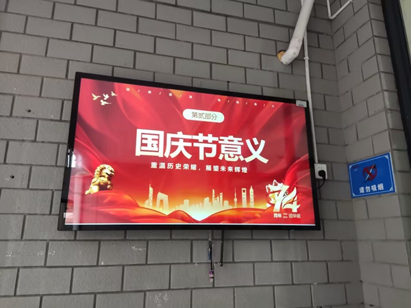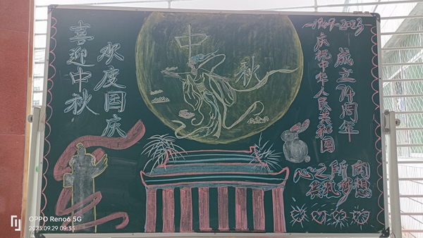 营造氛围,欢度中秋、喜迎国庆佳节。今年的中秋、国庆双节重合,月到中秋分外明,人到中秋情更浓。为了让同学们感受到浓厚的节日氛围,学生公寓管理与服务中心精心准备,中心办公室制作了图文并茂、色彩喜庆的欢度中秋、喜迎国庆专题PPT在学生公寓各楼栋宿管值班室处电视屏上进行滚动播放。春雪楼门禁上方LED条屏上也滚动播放着“国庆又逢中秋月圆 伟大祖国大好河山”“五星红旗 向你敬礼 愿我们的祖国繁荣富强”等节日标语。西区修能楼、笃行楼的宿管老师也是积极开动脑筋,充分发挥“劳动育人”实践成果,携手劳动课学生在可移动式黑板上办了一期色彩斑斓、内容丰富的板报,不时有学生驻足观看。