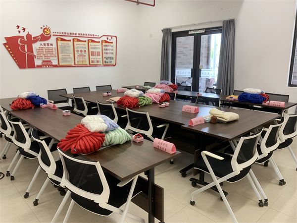 为了更好地开展此次活动,“寓管家”团队早早地就忙碌了起来,团队成员用平日积攒的废纸折叠出简易的纸质收纳盒,将手工课上所需要的零散材料放置在收纳盒内。同时,公寓阿姨们将提前收集到的旧衣物、旧毛巾进行清洗晾晒,并裁剪成合适的大小供同学们使用。
