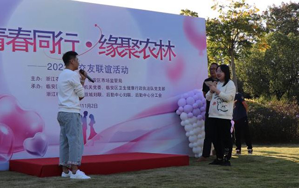 银杏金黄,硕果盈枝。11月2日下午,“青春同行·缘聚农林”为主题的交友联谊活动在美丽的浙江农林大学东湖畔举行,来自临安区市场监管局、临安区卫健康行政执法队、青山湖科技城、杭电信工学院、之江实验室以及我校各学院、后勤中心的40余名优秀单身青年参加活动。
