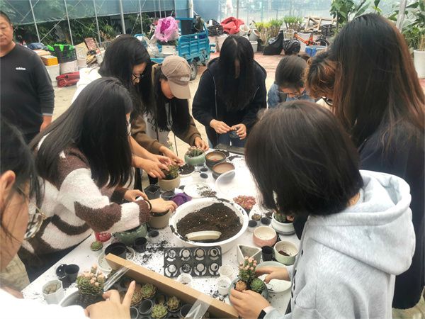 活动现场,物业服务部苗圃主管王敏向同学们介绍了常见的室内盆栽植物和多肉植物,对多肉植物的种植要点进行了详细讲解。宣讲结束后,同学们在后勤物业的苗圃园亲手进行多肉盆栽的种植。