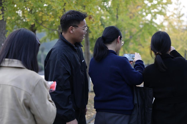 培训安排了实操环节,在学习完理论知识后,学员们跟随老师到银杏大道拍摄校园秋景。学员们学用结合,在老师的手把手指导示范下应用学习到的相机、手机的拍摄方法和构图技巧,亲身感受摄影艺术的魅力,提升摄影技能水平。