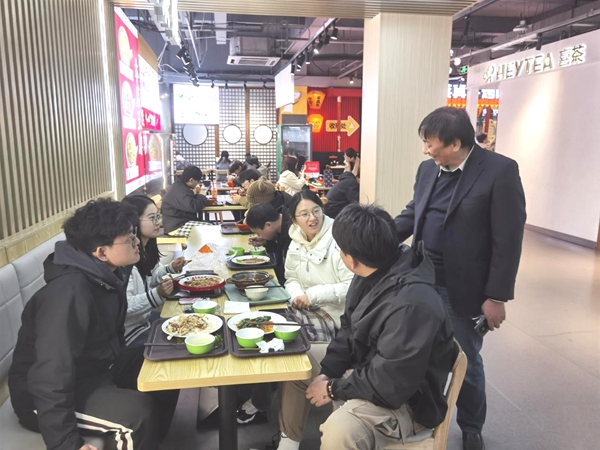 会前,黄在宇秘书长按照“四不两直”的方式对我校松苑餐厅、梅苑餐厅等地进行了现场考察,并与就餐学生进行了深入交流,详细了解学生对学校餐饮保障工作的满意情况。