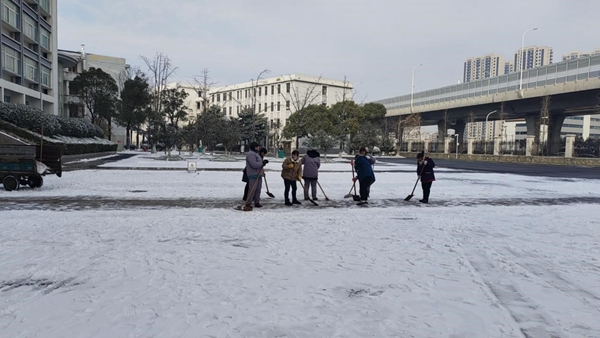 12月18日下午至12月19日上午,江苏护理职业学院后勤保卫党总支组织党员干部、广大职工在科技路校区、黄河路校区开展了清雪除冰行动。在大家的不懈奋战下,通往教学楼、学生公寓、办公楼、食堂楼、后勤楼、医务室等重要场所的所有路段均已完成冰雪清扫和撒盐作业,切实保障了全校师生的安全通行,有力展现了后勤人在“急险难”任务中能够冲得上、完得成的良好工作风采。驻校物业公司人员等外包服务单位人员给予这场行动以有力的配合,发挥了重要作用。以下为现场图片: