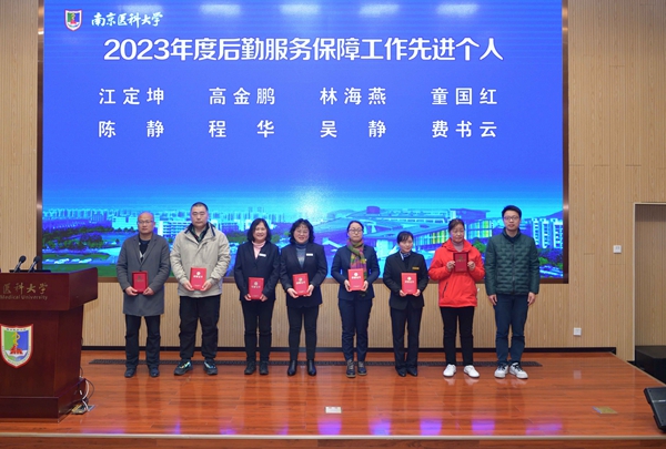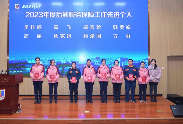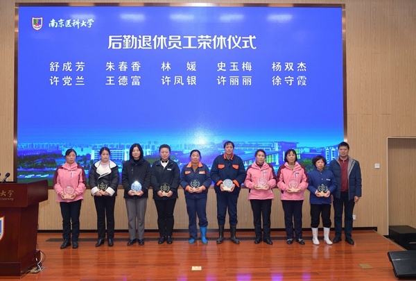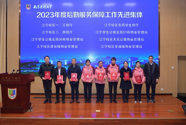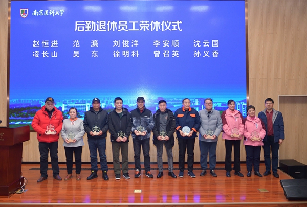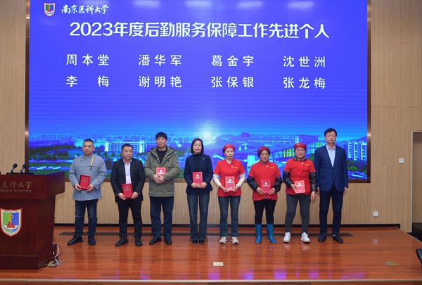 会议还举行了2023年度南京医科大学后勤服务保障工作先进集体和个人表彰仪式和后勤退休员工的荣休仪式。