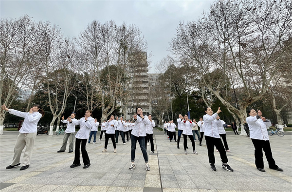 跳绳在色彩斑斓的花海中上下翻飞……清水河宿舍、沙河宿舍两个工会小组以“绳舞翩翩”为主题,开展了一场健康活力的跳绳运动,让大家在忙碌的工作之余放松身心、享受运动健身带来的乐趣。欢快的音乐、整齐的舞步、优美的舞姿,沙河饮食服务部工会小组开展了一场喜庆热闹的健身操展演,女员工们尽情抒发对美好生活的热爱,展示新时代女性的精神风貌和健康形象。