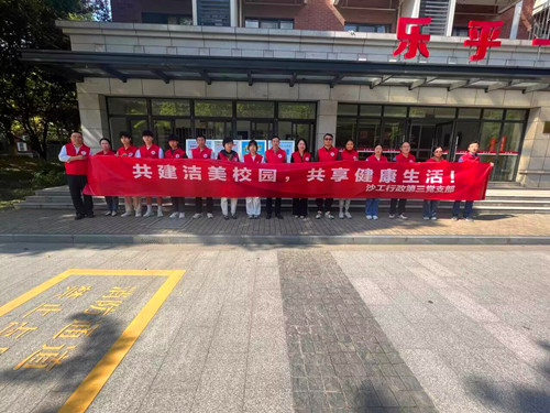 四月中旬,后勤处在行政楼、教学楼、生活区开展爱国卫生主题宣传,向广大师生宣传健康生活、爱国卫生、生活垃圾分类、绿色出行等相关健康知识,引导青年学子进一步增强健康卫生意识,养成健康合理膳食、适量运动的健康生活方式。4月24日下午,行政第三党支部全体党员、学生志愿者20多人全面清理了学生公寓周边绿化带、卫生死角中的垃圾和烟头。