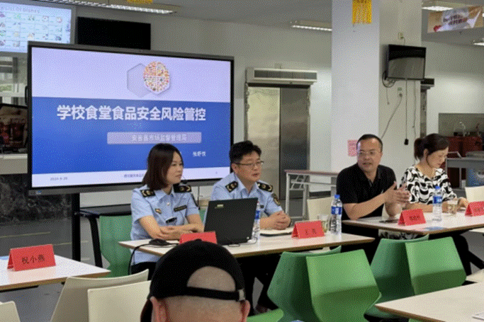 为提高学校食堂餐饮从业人员食品安全认识,维护在校师生饮食安全,预防食品安全事件发生,6月20日下午,后勤事务中心特别邀请安吉县市场监督管理局来学校开展《学校食堂食品安全风险管控》培训。校区师生代表、膳管会成员、食堂工作人员等共计130人参加培训。活动中,安吉县市场监督管理局餐饮服务监督管理科科长王亮、孝源所所长张舒悦就校园食品安全基本情况、校园食品安全风险防控等内容与我校师生开展面对面交流。培训过程中,张所长用通俗易懂的语言让参与培训的师生们了解到学校食堂食品安全的重要性,使参会人员全面地了解到食品安全卫生规范及管理制度等,同时结合食堂卫生现状以及案例,细心讲解如何执行规范标准、如何进一步加强对食堂食品安全的监管。