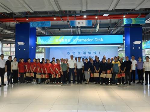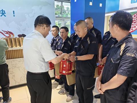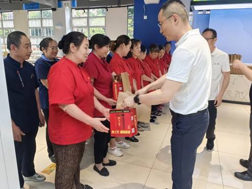 刘强、朱明分别代表学校,向为确保学校暑期正常运转坚守岗位的后勤员工们表示衷心的感谢,亲切叮嘱大家要注意身体,劳逸结合,合理安排工作休息时间,并一一送上防暑降温慰问品。