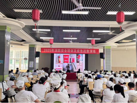 随后进行的应急疏散演练,模拟了食堂后厨发生火情的场景。随着警报声响起,全体员工在安全员的引导下,迅速反应,弯腰低姿、用湿毛巾捂住口鼻,严格按照预定疏散路线,紧张有序地撤离至指定安全区域。整个过程组织严密、行动迅速,达到了演练的预期效果。