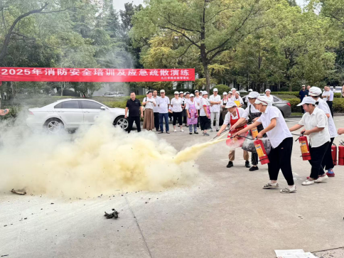 最后,在专业人员的指导下,全体参训员工在空旷场地进行了灭火器实操演练。大家轮流上场,亲手操作干粉灭火器对模拟火点进行扑灭,熟练掌握了“提、拔、握、压”的操作要领,确保了在紧急情况下能够正确、有效地使用消防器材。
