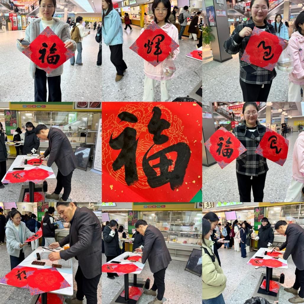 元旦将至,为营造温馨欢乐的新春氛围,缓解广大师生期末学习与工作压力。近日,江西中医药大学后勤保障服务中心在湾里南校区星星餐厅开展“墨香迎元旦 福气满食堂”主题活动,现场免费为师生书写、赠福,以笔墨传情,为师生送上新春的美好祝福。