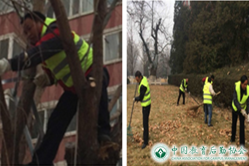 校园服务管理中心利用假期对校园和家属区的树木进行修剪和养护,环卫师傅及时清扫落叶,保证校园环境整洁卫生。