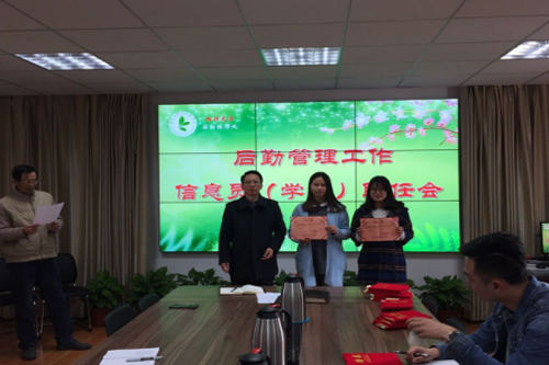 会上对2016年度优秀后勤管理工作信息员进行了表彰,为新聘任的后勤管理工作信息员颁发了聘任证书。
