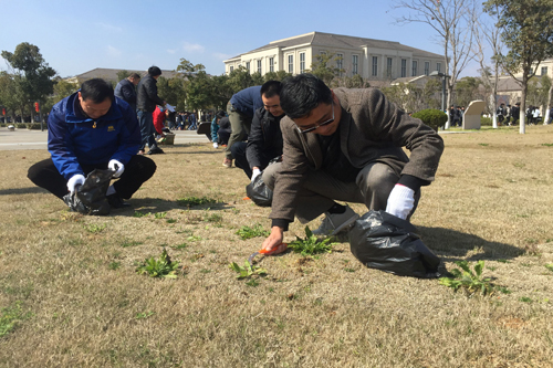 阳春三月,草长莺飞。为增强党员的带头意识和服务意识,以实际行动发挥共产党员的先锋模范作用,3月14日,后勤第三党支部组织开展了党员义务拔草活动。