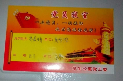 3、各学院党总支新发展的党员,要及时通报公寓党组织,公寓党工委为所在寝室统一挂牌;