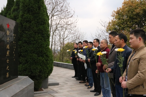 在苍松翠柏的掩映下,革命烈士纪念碑前气氛庄严肃穆。党员们肃立在革命烈士碑前,深切缅怀革命先辈的丰功伟绩;党员代表向英烈们敬献了花篮;在党支部书记柳欣江的带领下,全体党员面向党旗,重温了入党誓词。笃定坚毅的眼神,铿锵有力的声音久久回荡在革命烈士战斗过的青山绿水之间。全体党员用有力的誓言表达了对党矢志不渝的坚定信念。随后,全体党员重温了革命历史和英雄事迹,进一步感受到英烈们忠贞爱国、艰苦奋斗、誓死捍卫正义的高尚情操。
