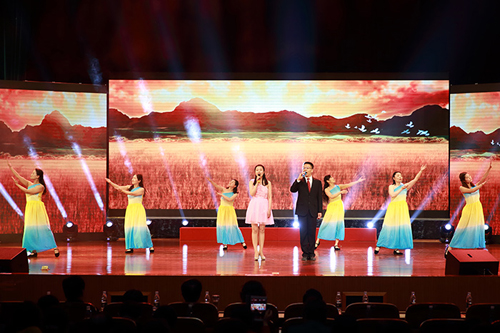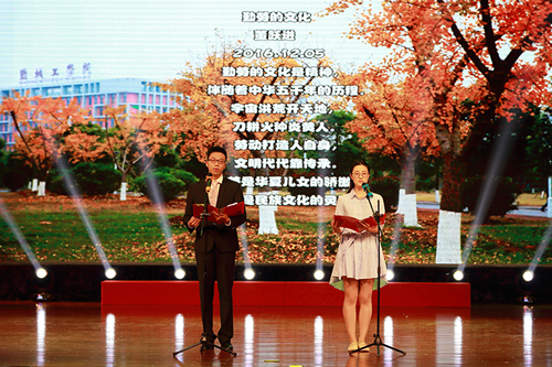 4月27日下午,在南校区行政楼报告厅,盐城工学院后勤服务总公司成功举办第五届“劳动者之歌”后勤员工“五一”文艺汇演。学校党委常委、副校长董跃进出席演出。后勤服务总公司总经理廖大干致辞。学校有关部门、单位负责同志、后勤系统员工近400人观看演出。