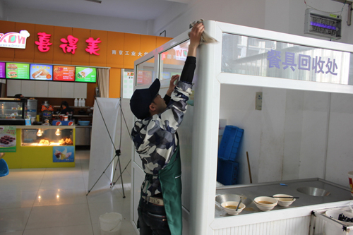 4月15日,南京工业大学后勤服务集团与校学生会雷锋精神研习社联合举办了“借·你的名字”学生走进食堂活动,通过网络或向学生会自愿报名参加活动的18名学生,分别走进南苑食堂、浦江一食堂,各自跟随一名食堂员工体验了他大半天的劳动。