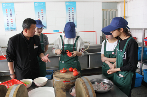 走进南苑食堂的学生还在钟潭宁主任的指导下,自己动手制作了翠珠鱼花和水果鸡柳两道菜肴。大家在品味自己劳动成果的同时,纷纷感叹劳动的疲惫和门道,都表示要尊重劳动和劳动成果,坚持“光盘行动”。