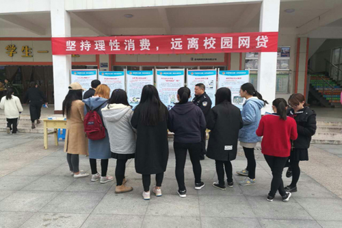 为进一步提高在校大学生的安全防范意识,预防和减少诈骗类案件的发生,清明节前夕,南京师范大学泰州学院后勤与保卫处联合高教园区派出所在北食堂西广场开展了以“适度理性消费、拒绝校园网贷”为主题的防范校园网贷和电信诈骗宣传活动。