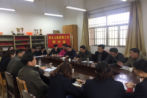 4月13日下午,后勤保障处和学工处在商学院举办学生公寓管理工作研讨会。商学院副书记孙茂庆主持会议,学工部副处长费拥军,后勤党委副书记李永刚出席此次会议。