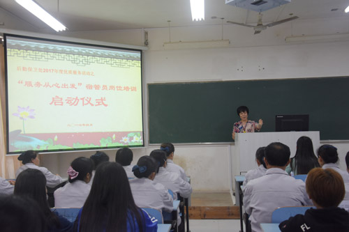 4月15日下午,广西交通职业技术学院后勤保卫处2017年度优质服务系列活动之 “服务从心出发”宿管员心理健康教育培训暨宿管活动月启动仪式在A216教室举行,此次培训由学生工作处心理咨询室关文莉老师主讲,李锦副处长、宿舍管理干事以及宿管员参加培训。
