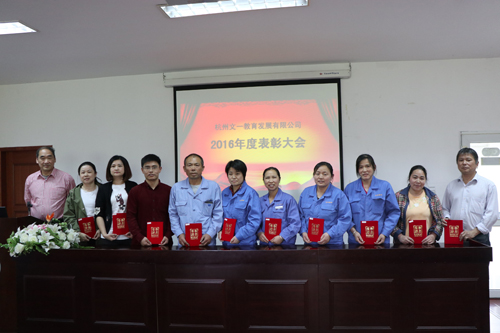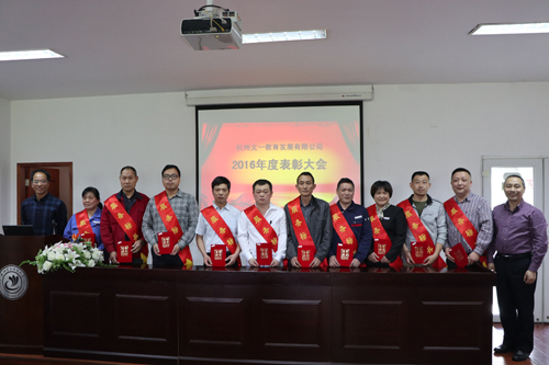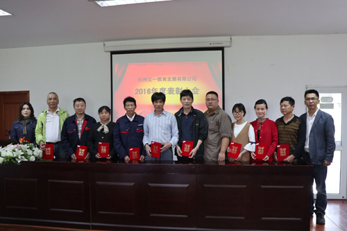 最后,公司总经理王文虎在表彰会上发表总结讲话。五一节来临之际,他首先代表公司领导班子向公司全体干部职工致以节日的问候,向本次受到表彰的先进集体、优秀员工、服务标兵致以热烈祝贺和崇高敬意。随后,他总结回顾了2016年度公司生产经营和各项工作取得的可喜成绩。他指出,2016年是公司全面发展的一年,后勤服务保障质量和管理水平不断提高。2016年是公司极其不平凡的一年,学校甲乙方分开,公司在完成日常服务保障工作的基础上,顺利完成了助力青山湖校区启用、校庆60周年后勤保障、G20后勤保障、内部机构调整等重要工作。2016年,是公司历史性突破的一年,公司取得了学校服务管理型部门考核第二名的历史性最好成绩,获得了全国教育后勤信息与宣传工作先进单位、全国高校伙食工作先进集体、浙江省教育十大影响力人物、浙江省高校感动公寓人物、浙江省万名好党员等省级以上荣誉46个。2016年,是公司全面完成财务目标的一年,师生服务满意度和利润均有显著增长。他强调,这些成绩离不开全体干部职工的辛勤付出,并希望公司全体员工在今后的工作中,继续发扬爱岗敬业,乐于奉献的精神,处处体现先锋模范带头作用,在各自岗位上树立起一面面杭电后勤人的旗帜。2017年公司将在学校的领导下,围绕“组建以杭州文一教育发展有限公司为母公司,形成后勤、教育、科技三驾马车一体两翼,以及若干专业公司为子公司的管理卓越、服务规范、运营高效、保障有力、特色鲜明的全国知名、省内一流的高校后勤服务品牌企业 ”的总目标,践行“五心服务”理念,全面推进安全稳定、阳光后勤、文化后勤、规范后勤建设,为学校省重点大学建设提供一流的后勤服务保障,以优异成绩迎接党的十九大胜利召开。最后,他祝愿广大员工在平凡的工作岗位上通过自己的辛勤劳动和努力创新实现自身的价值,展现风采,实现精彩人生。