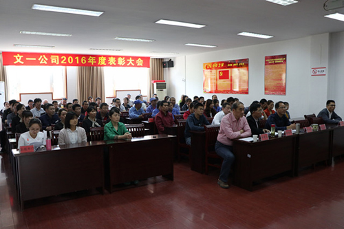4月28日下午,在五一国际劳动节来临之际,文一公司2016年度表彰大会在公司培训教室顺利举行。公司党政领导、各部门主任及优秀员工、服务标兵共80余人参加了本次表彰会。会议由公司副总经理王劲峰主持。