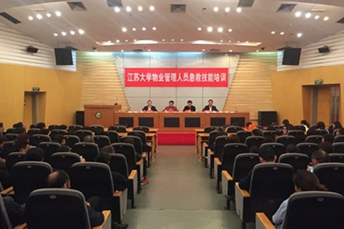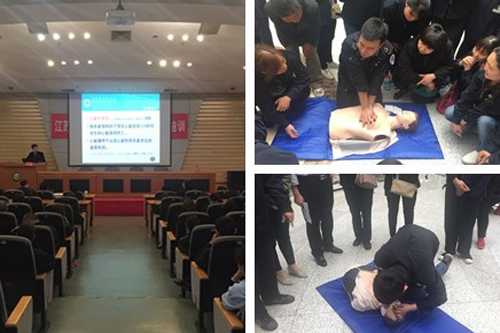 随后,主讲老师从基本知识和现场操作两方面为大家讲解了“心肺复苏术的实践操作”。老师通俗、诙谐的语言,让参训员工对心肺复苏的全过程有了更加深刻的理解,懂得了抢救生命时间的重要性,建立了“关爱生命、珍惜生命”的全新理念。理论授课结束后,主讲老师及随行的操作指导老师在现场进行了示范性操作,并将员工分成小组进行演练,让每位员工均有亲自操作的机会,大大提升了参训员工的实践操作水平。同时,公寓员工积极认真的态度和一丝不苟的精神也得到了镇江120急救中心老师们的高度赞扬。