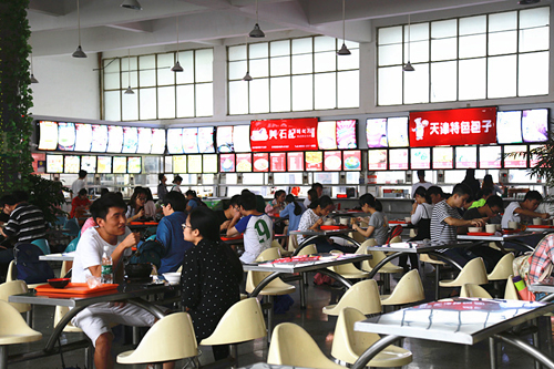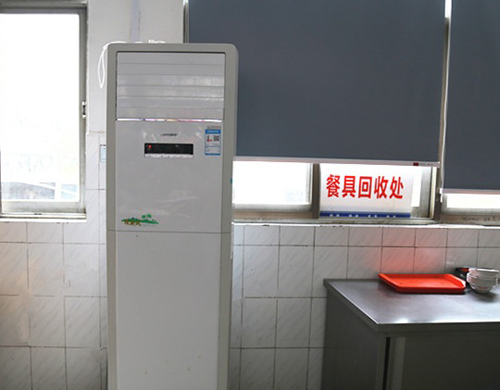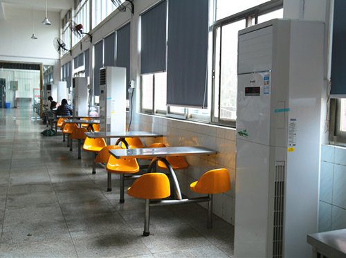 针对这个情况,学校后勤服务中心讨论决定在食堂安装空调,为同学们提供一个舒适的饮食环境。现在,一走进食堂,就能感受到食堂的丝丝凉意。空调一经开放,来食堂就餐的学生又增多了,甚至在期末复习期间,不少同学选也择在食堂好好复习。