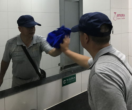 韩金桥每天早上5:30起床,这样的习惯已经坚持了30多年。从六点开始,他就要准备一天的工作了,教室、走廊、楼梯、卫生间等的全天保洁;学生下课期间的秩序维护、引导;灯具、电线、水龙头等公用设施损坏后的及时维修;随时注意水电的节约和设备老化情况等等。正是这样一些细枝末节的小事,维系着教学楼秩序的正常开展,同学们平日看不到清洁员在教室工作,但教室却始终是干干净净的,这正是韩师傅和员工们一起努力的结果。在谈及工作感受时,他坦率地说:“我的工作和师生的工作学习密切相关,我心里时刻想的都是怎么样把教学楼的环境卫生做的更好,让大家能够舒舒服服的上课学习,让师生满意、放心,事情再琐碎,多用点心,多做点事,都可以解决”。在近两年的华中农业大学教学楼师生满意度调查分析报告中,师生对教学楼物业整体水平的基本满意率达到了99%,在绿化维护这一单项中基本满意率达到了100%,这给教学楼乃至学校的形象都加了不少分,在这个成绩的背后,正是韩金桥和他的团队。