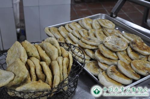 工作间隙,我们采访了食堂经理。她一边熟练地做着火烧一边向我们介绍食堂情况:第三食堂是整个海大早餐品种最丰富的食堂,早餐品种多达32种,有炸糕、馅饼等东区北区吃不到的品种。
