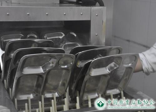 最后一批餐具也已清洗消毒完毕,工作人员正将其整理好准备放入食堂前厅的橱柜里。
