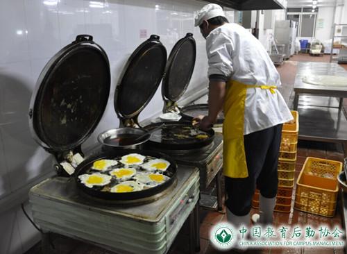 住宿条件有些简陋,十几个人一间的宿舍由于我们的进入更显得拥挤。只用了10分钟的时间,他们便整理完毕,匆匆向食堂后厨跑去。有些员工不住学校宿舍,早晨起得就更早,辛苦可想而知。