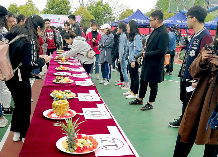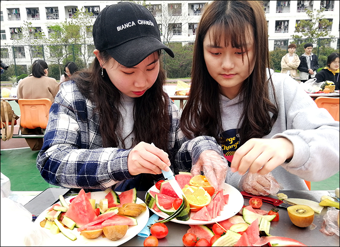 开幕式活动现场,举办了精彩的文艺演出和水果拼盘比赛、包饺子比赛等活动,赢得了围观同学的频频点赞和阵阵掌声。吴开华等出席开幕式的领导和老师,也观摩了同学们的表演和比赛。