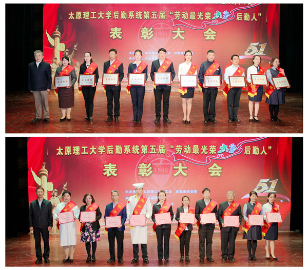 为了迎接学校117周年校庆,庆祝“五一”国际劳动节,献礼祖国70周年华诞,太原理工大学后勤系统第五届“劳动最光荣,出彩后勤人”表彰大会于4月29日在虎峪校区同泽会堂隆重举行。山西省教育厅安全稳定处处长武振杰、山西省直属机关事务管理局服务保障处处长王戈、太原理工大学党委书记吴玉程、党委副书记李晋平、纪委书记翟健、党委常委、副校长吕永康、吴斗庆、树学峰、梁卫国出席会议,省直机关事务管理局和兄弟院校的后勤同仁、学校各职能处室和各学院党政领导、师生代表、后勤系统职工代表共800多人参加表彰大会。本次会议由太原理工大学工会、后勤系统党委、后勤保障处主办,后勤系统工会承办。